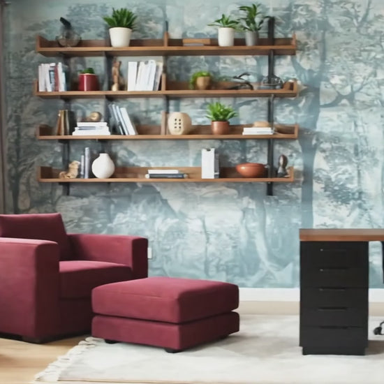 Create a contemporary burgundy and blue office that'll help you be productive with a beautiful backdrop!