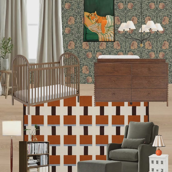 Create a nursery that's calming but vibrant, with a mid-century modern, gender-neutral theme that will grow along with your child!